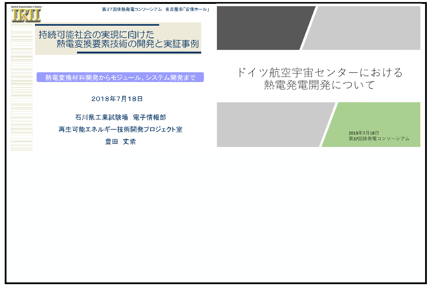 講演「工業炉廃熱と大気放熱を用いた低コスト熱電発電ユニット」