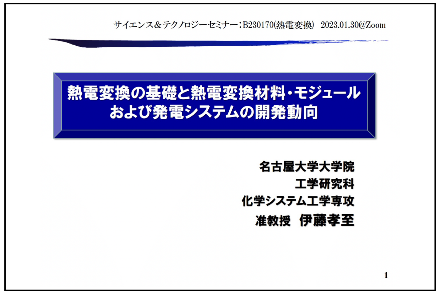 講演「技術的観点から見た熱電材料・モジュールの評価」