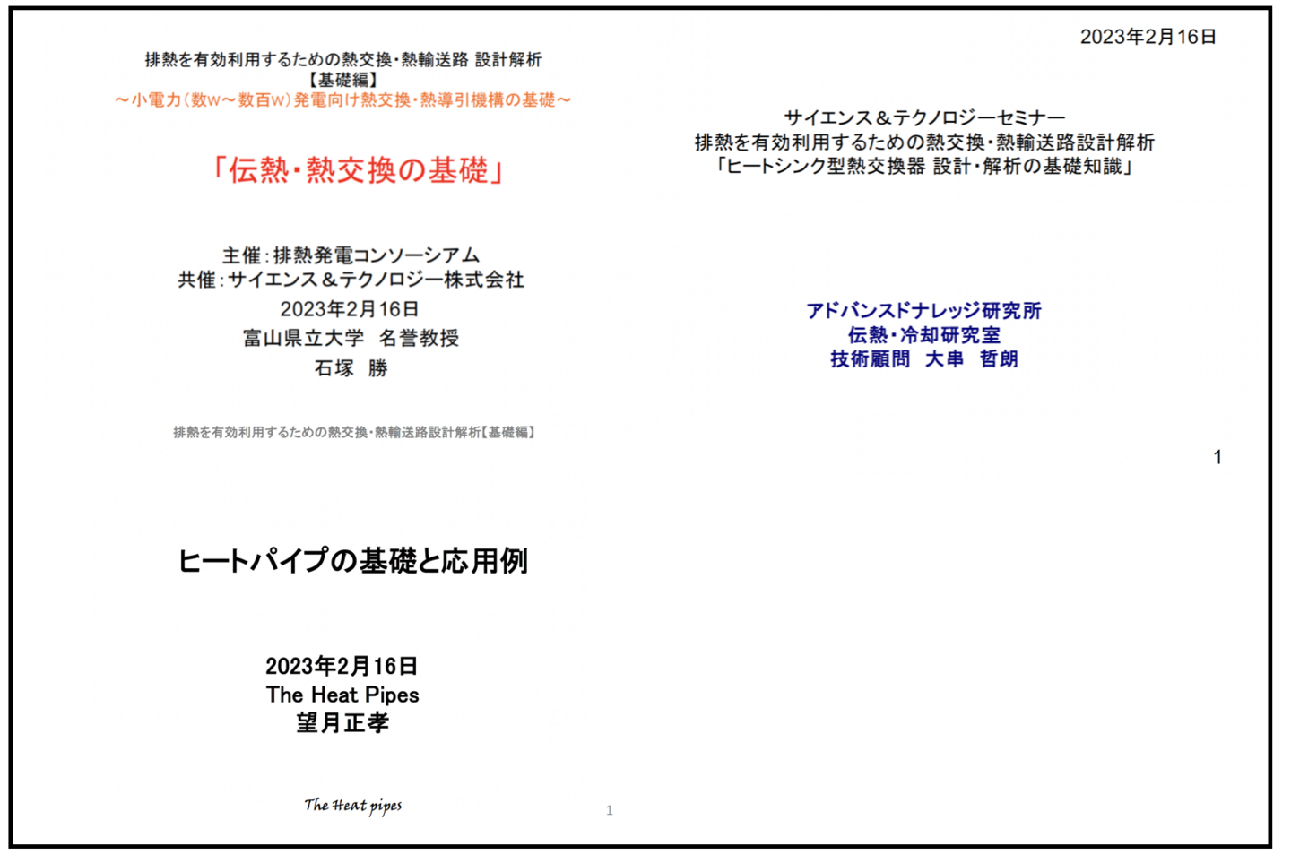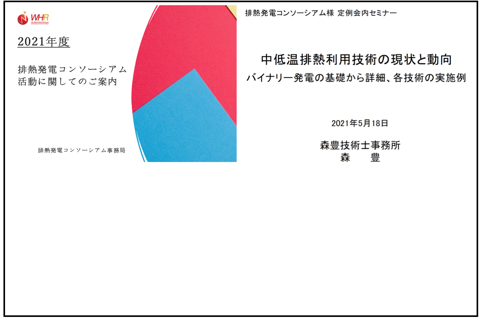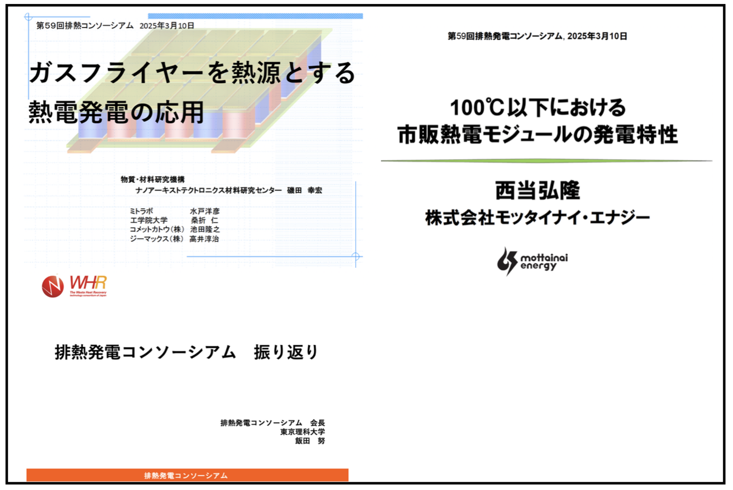 第1回WHRセミナー:「高低温排水からの熱発電」