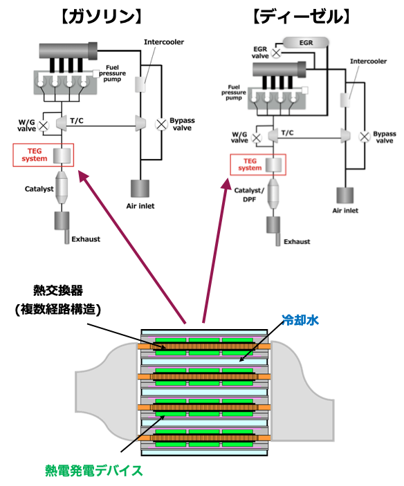 自動車エンジン排気系への実装・排熱発電センシングシステム実証
